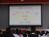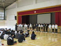 講演では、未成年による喫煙や飲酒、覚醒剤や大麻などの危険薬物に関する危険性とともに、犯罪を犯してしまったときにどのような責任が発生し、その後の未来にも影響していくことを学びました。随所に現場の体験を元にしたお話や生徒にも納得させるような例えがあり、生徒は講演を最後まで集中して聴くことができていました。生徒代表からは「お話を聴き、薬物は本当に怖いものだと再確認し、薬物は遠いところの話ではないと実感しました。私たちは、将来、薬物を絶対に使用しないし、誘われてもはっきりと断りたいと思います。」と、お礼の言葉を伝えました。
